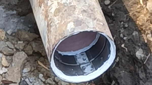 チューブテックス工法により、鋼管の内部に腐食に強い新しい管が更生されました。